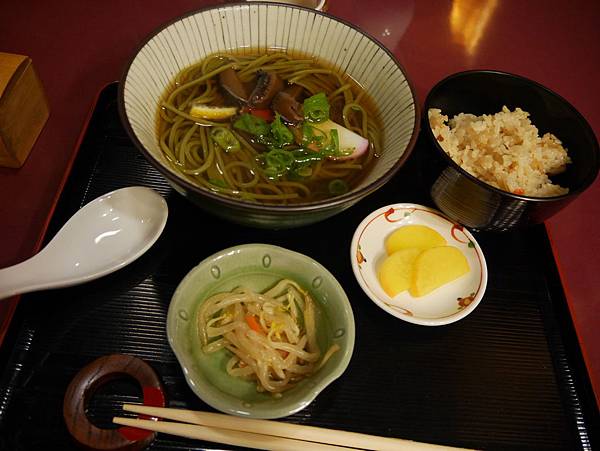 終於~~皇天不負苦心人,原PO終於在清水寺看到還在樹上的楓葉了..(淚),原PO覺得清水寺佔地面積以及周圍商圈腹地比起金閣寺大太多了,所以建議清水寺可以安排多一點時間留在這邊,按原PO的行程,清水寺是今天最後一站,所以我們就慢慢在這邊欣賞還在樹上的楓葉....至於今天的晚餐,原本想去吃傳說中的順正湯豆腐,不過沒預訂客滿不給進,所以跟第一天一樣,路邊隨便找一間喜歡的就進去吃了,今天的晚餐是蕎麥麵套餐,味道也很不錯。這兩天吃飯都沒特別去找餐廳,路邊看喜歡了就進去吃,也沒遇到雷店,不曉得是原PO運氣不錯還是日本每一間做吃的手藝都還OK,不過話說回來,這一趟六天下來,原PO每餐都是這樣解決,而且還是沒遇到雷店,所以原PO自己的感覺是日本的店好像真的隨便哪一間都不錯吃....