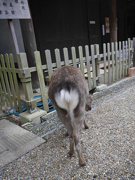 春日大社本殿內部是由紅色的木頭組成,看起來很祥和莊嚴,原PO一向不是太正經的人,所以繞了一圈就繼續去尋找我的鹿了....拍了一張鹿屁股特寫,跟各位分享一下XD