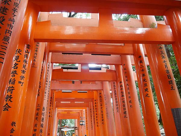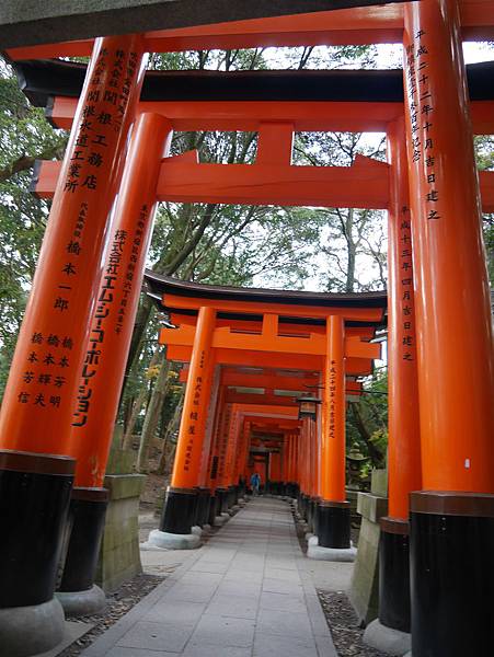 伏見稻荷最著名的特色大概就是這個連綿不絕的大紅鳥居,各位看官到這邊的時候請記住:先往裡面走,不要急著拍照,因為鳥居的後面是有寫字的,從後面拍回來才比較有Fu....千萬不要一看到鳥居就自嗨拍了很多照....到後面你會很想重拍XD