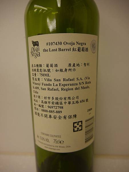第一支 - Oveja Negra the Lost Barrel 紅葡萄酒;入口單寧氣味濃郁,但是不酸澀,入喉後留下微微澀味,口腔內沒有太多殘存味道可以回味。
