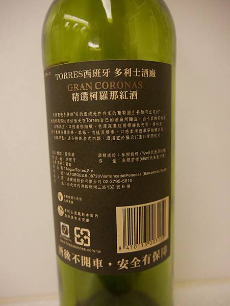 第二支 - TORRES 西班牙 多利士酒廠 精選柯羅那紅酒;