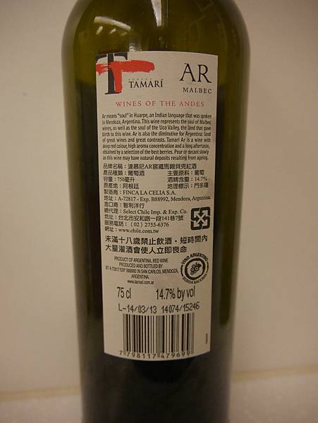 第三支 - TAMARI 達慕尼AR窖藏馬爾貝克紅酒